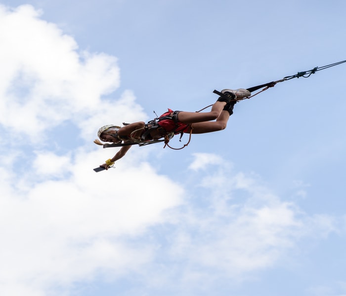 O objetivo desta atividade é teres a coragem de te deixares cair e sentir o pico de adrenalina a correr pelo corpo todo!